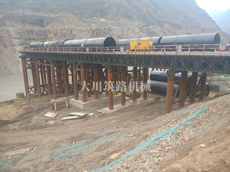 棧橋型號(hào):便橋采用(4×12m)+3m+9m+(2×12m)+3m,9跨貝雷架鋼便橋,橋梁全長(zhǎng)88.7m,橋梁寬度12m。