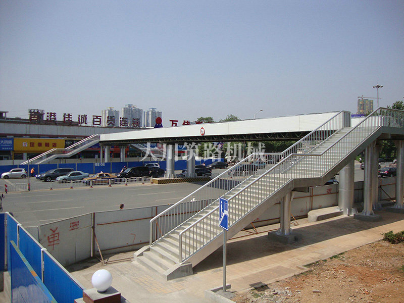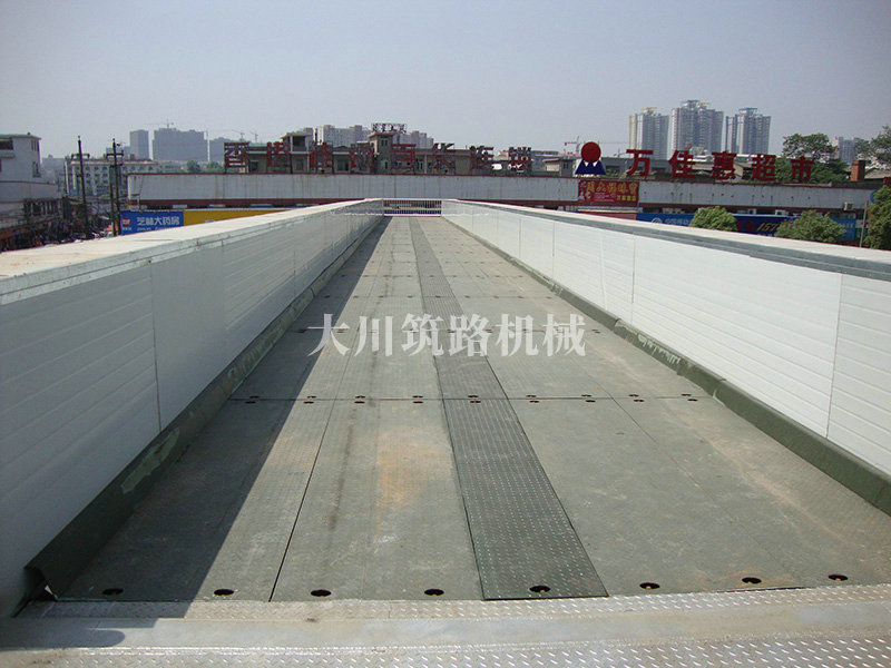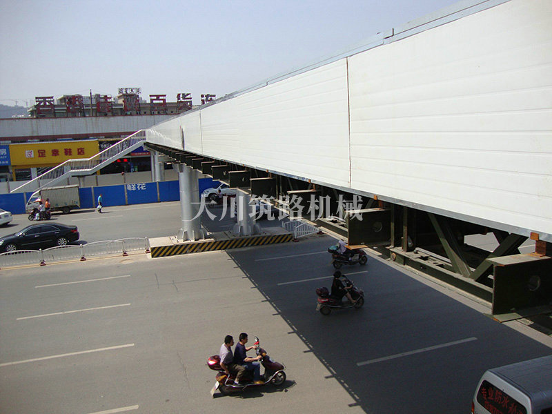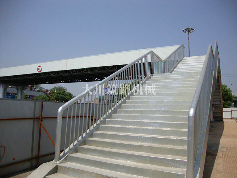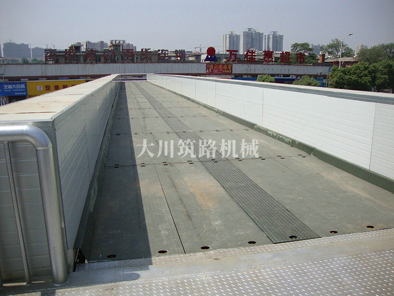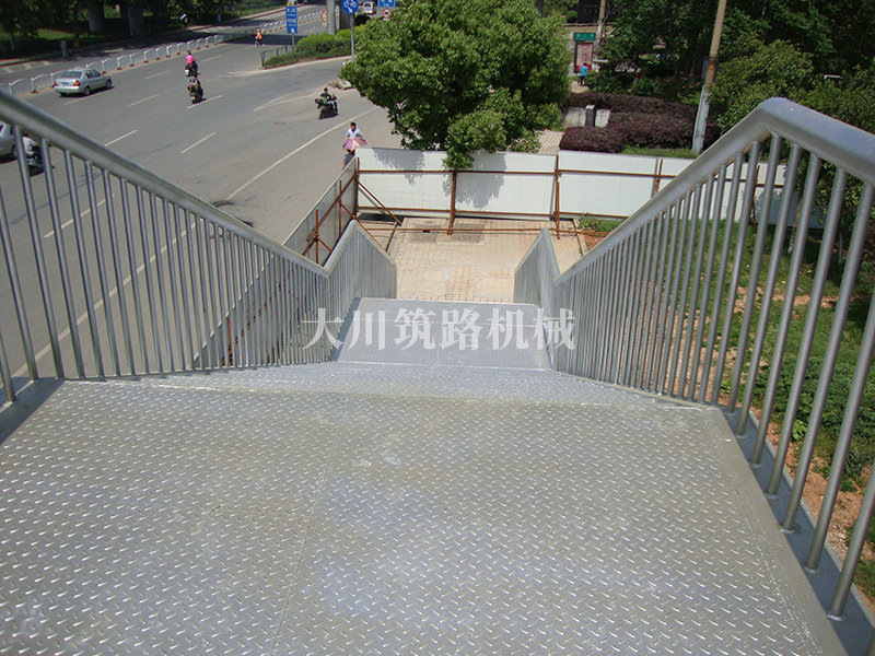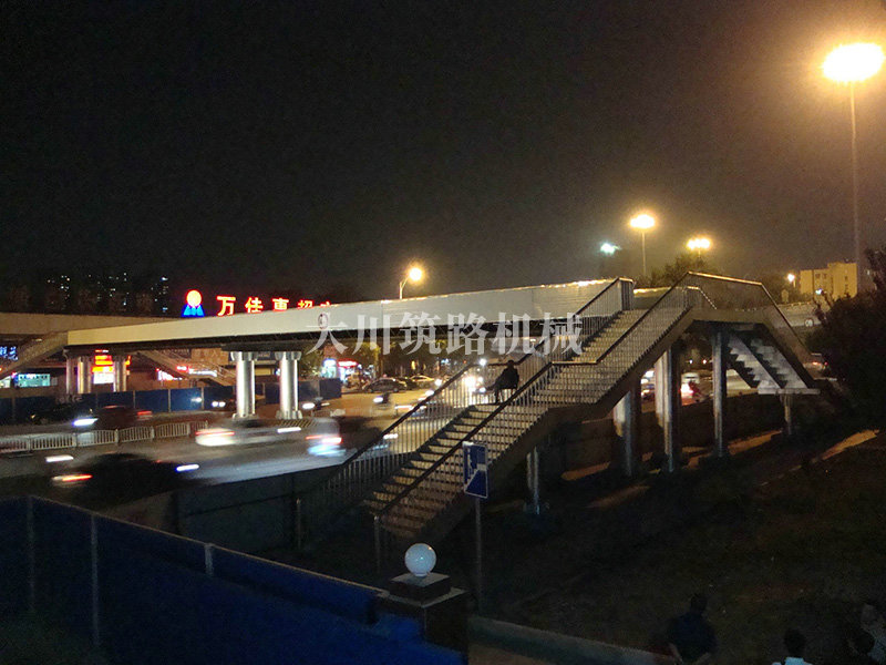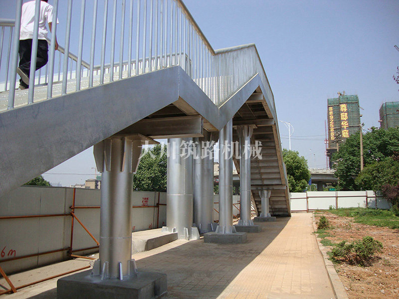 特點:本鋼橋主梁采用標(biāo)準(zhǔn)的“321鋼橋”現(xiàn)場安裝并用朔板包邊,梯道用型鋼、鋼板在廠內(nèi)加工好現(xiàn)場拼裝,達到安裝便捷、美觀、舒適的要求。本鋼橋安裝工期緊,安裝條件有限,大都只能得用晚間在封鎖交通的情況下安裝。
